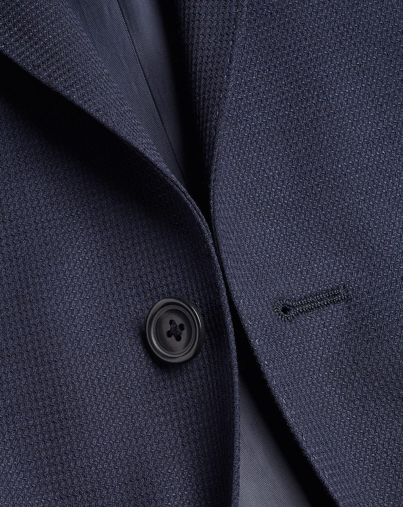 Blazer dal taglio moderno in pura lana merino e con una leggera trama quadrata. Poiché si tratta di lana merino, il tessuto è certificato dall'associazione Woolmark, che stabilisce gli standard di produzione per questa tipologia di lana.