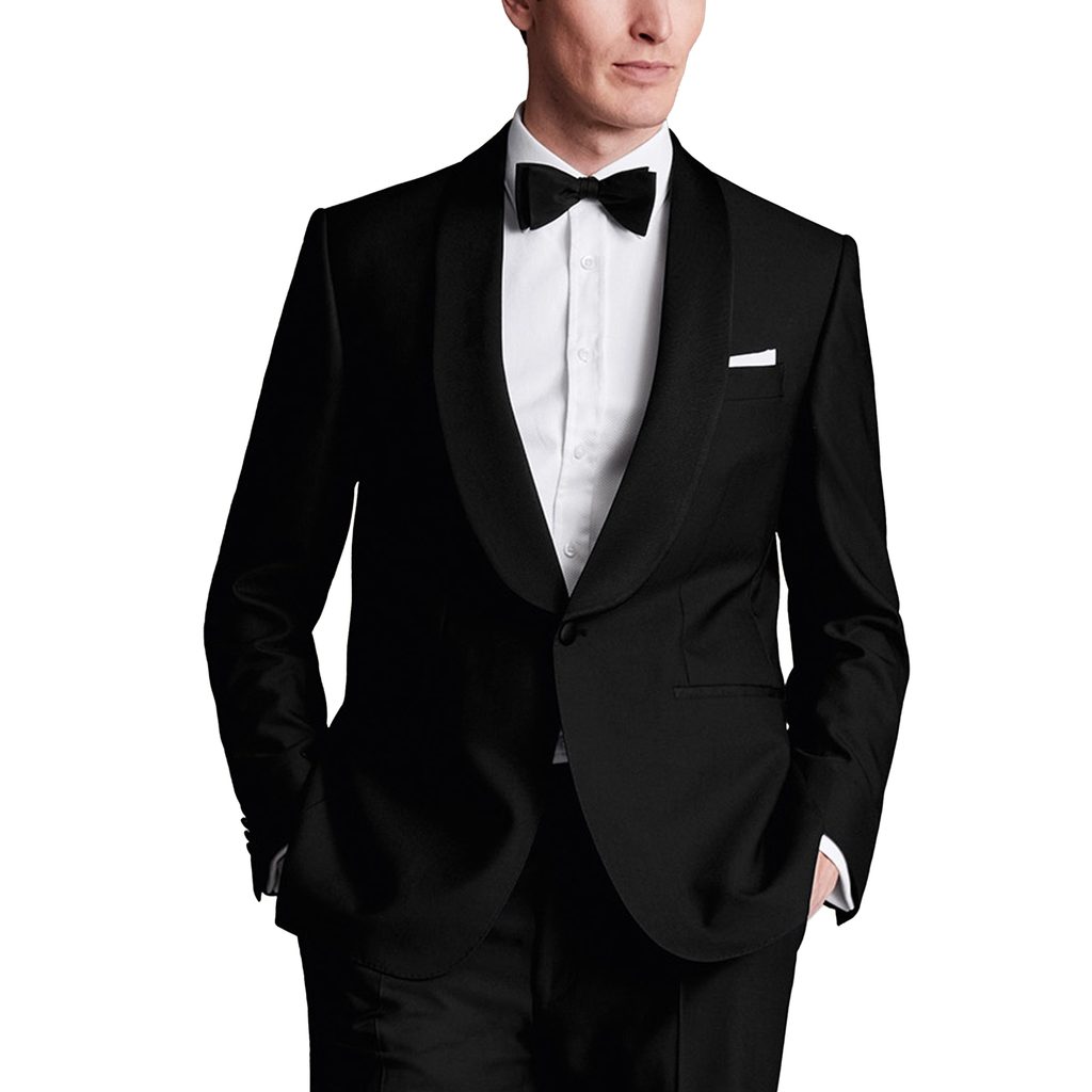 Il rever a scialle - "shawl lapel" - è un'alternativa più moderna al classico rever a punta per il smoking. Poiché non siamo più nel XIX secolo, anche questo tipo di rever è ora accettato nel dress code black tie.
