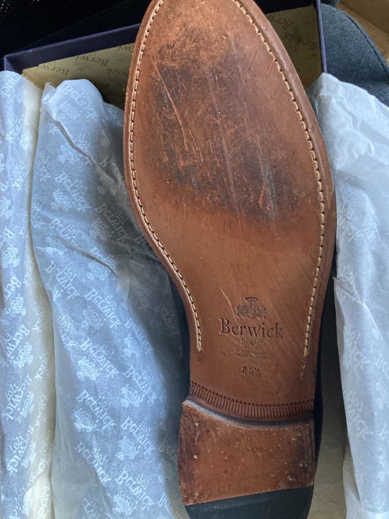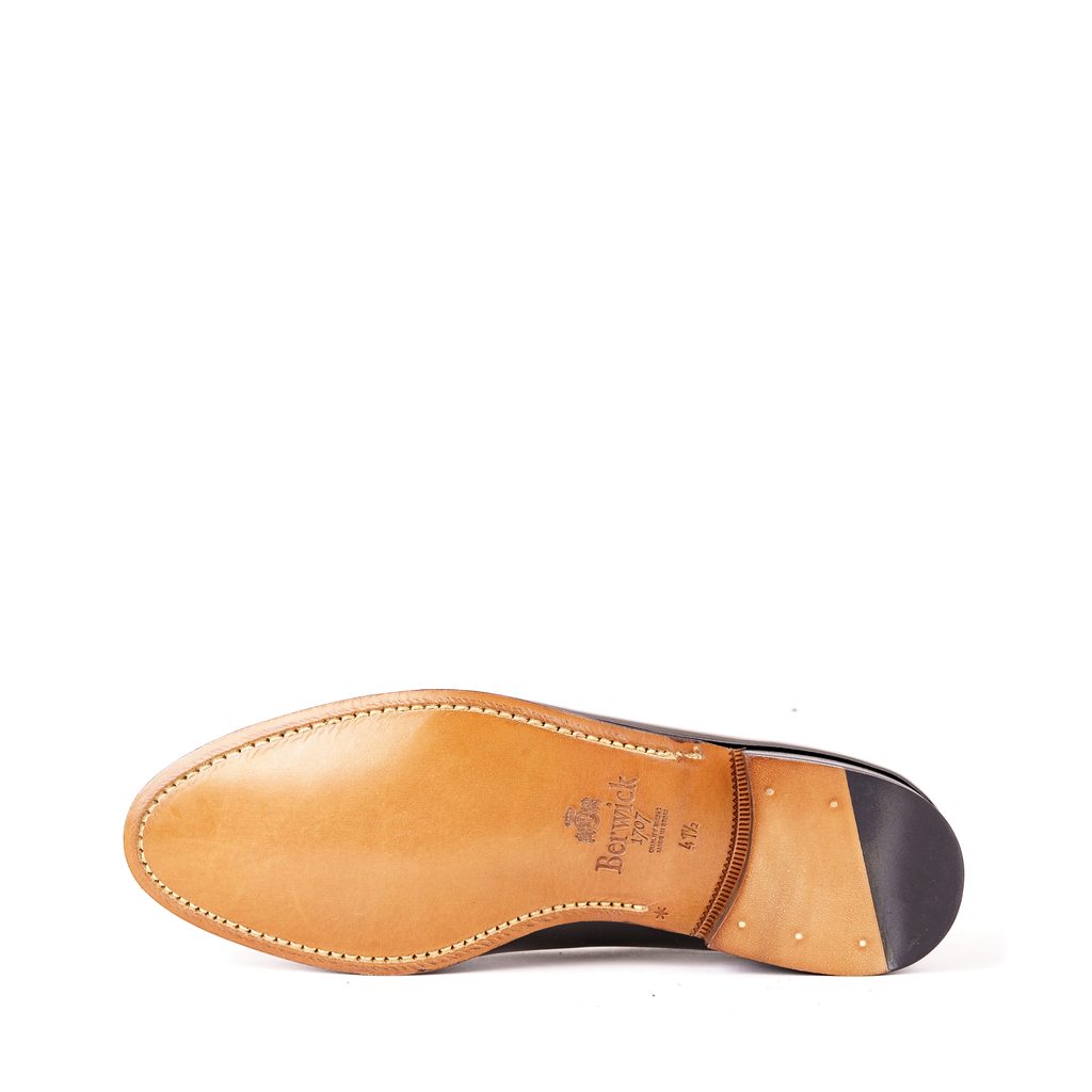 Come ormai consuetudine, anche questo modello del produttore spagnolo Berwick presenta suola in pelle e una tradizionale costruzione a telaio Goodyear, che ne consente una completa ristrutturazione.