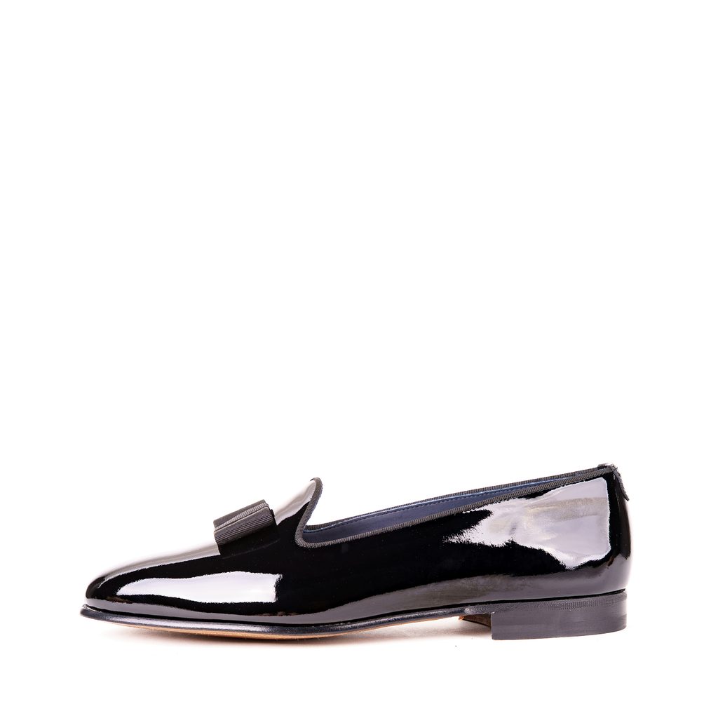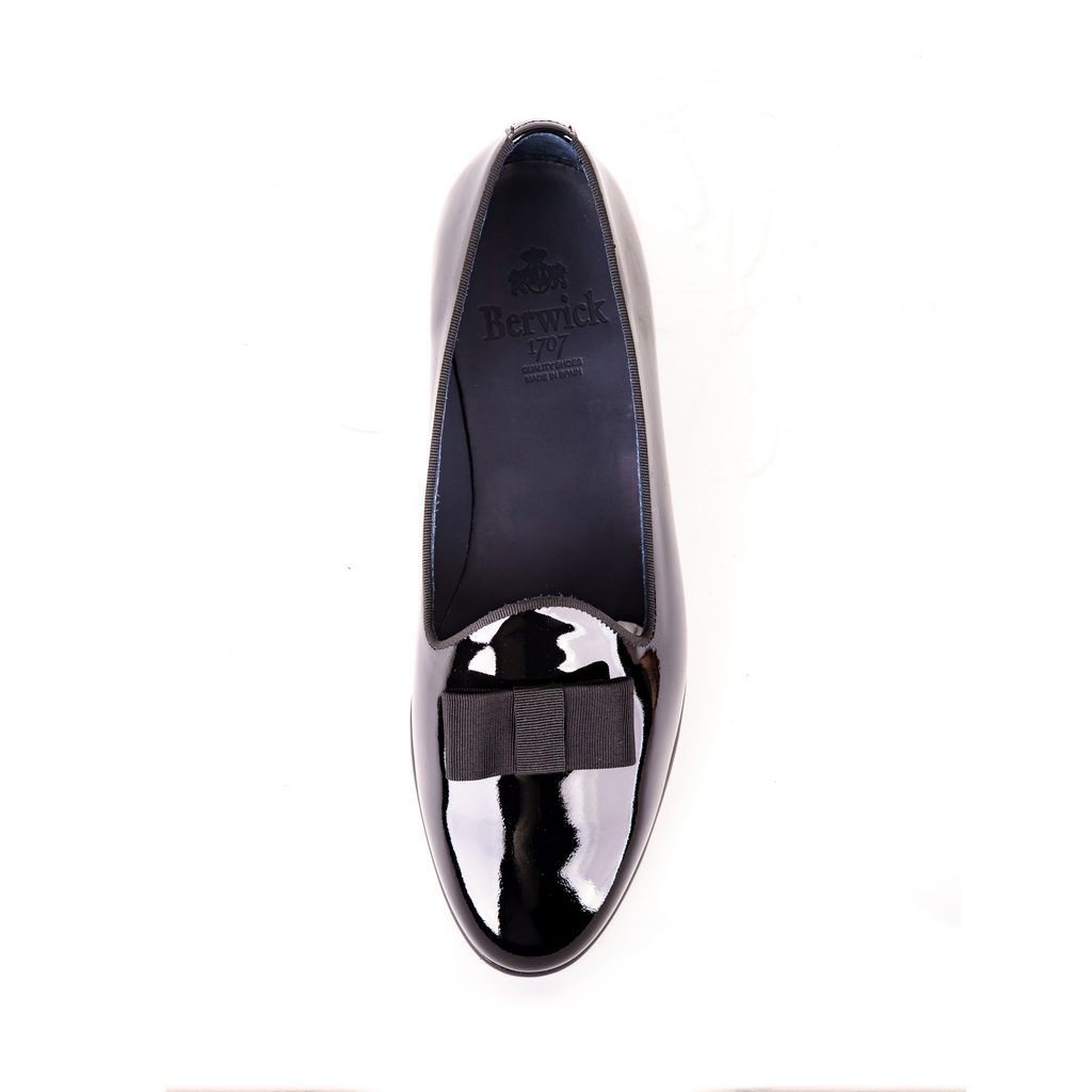 La versione più formale delle calzature più informali: così si potrebbero descrivere questi mocassini (tipo pump loafers) realizzati in pelle nera verniciata. Con una costruzione wholecut senza cuciture, come quella che avete visto finora solo nelle derby o oxford stringate. Massimo splendore continuo garantito, quindi non resta che trovare il Creative Black Tie perfetto da completare con queste scarpe.