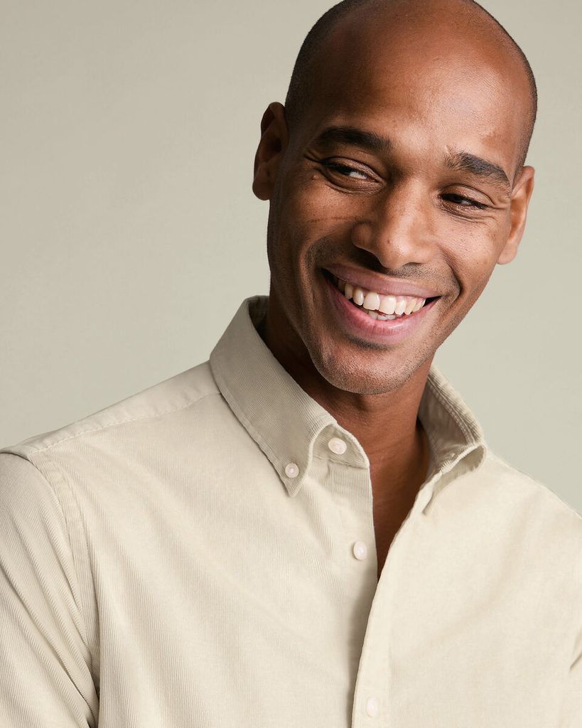 Realizzata in morbido velluto di cotone con una texture discreta, piacevole al tatto e resistente all’uso. Il colletto button-down mantiene la forma sia indossata abbottonata che aperta. La tonalità neutra color crema la rende facile da abbinare a chino, jeans o pantaloni in lana.