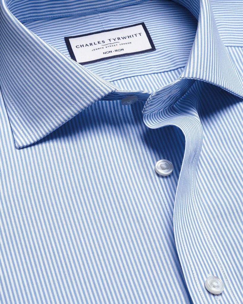 Camicia formale con una sottile riga in una delicata tonalità di blu fiordaliso, che unisce un look elegante a un comfort pratico. Grazie al tessuto elasticizzato si muove con voi, non contro di voi. Il trattamento "non-iron" garantisce che, anche dopo una lunga giornata, il vostro aspetto resti impeccabile come al mattino. Un compagno perfetto per l’uniforme da ufficio di tutti i giorni, con un tocco di leggerezza britannica.