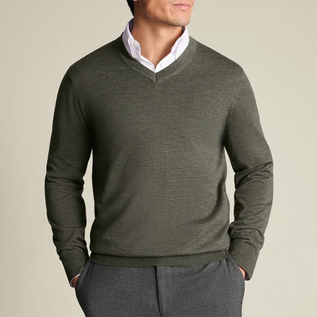 Classico maglione con scollo a V in lana Merino fine, che combina perfettamente eleganza e praticità. Grazie alla naturale traspirabilità e alla capacità di regolare la temperatura, è ideale sia sotto una giacca sia sopra una camicia. Leggero ma caldo – perfetto per l’uso quotidiano dall’autunno alla primavera.