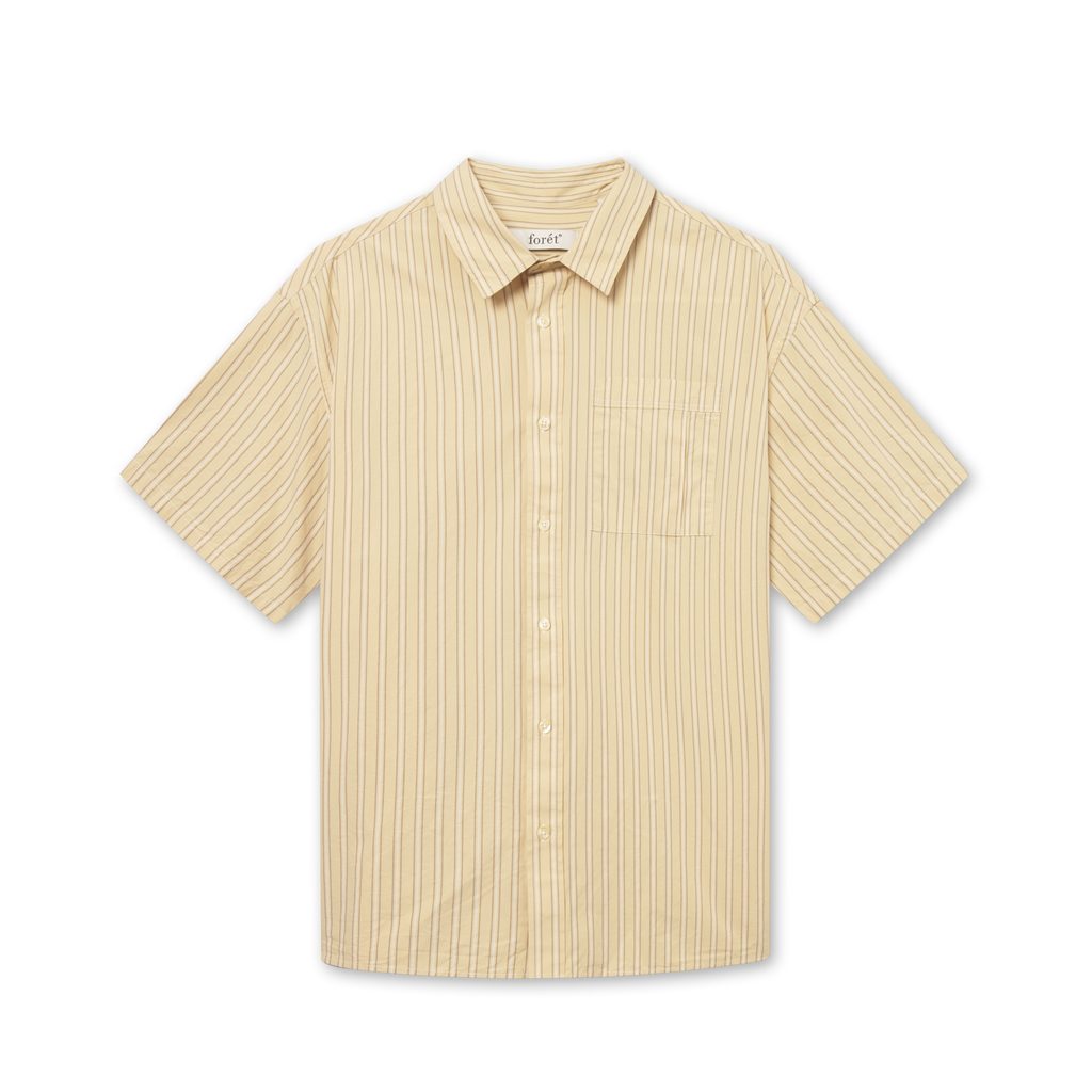 Con un accento retro discreto, la camicia Rose della collezione primaverile di quest'anno del marchio danese forét si distingue per il suo taglio classico che combina un comodo manico corto e un colletto classico con il giallo sabbia e sottili righe non contrastanti. Un capo versatile che vorrete indossare molto spesso.