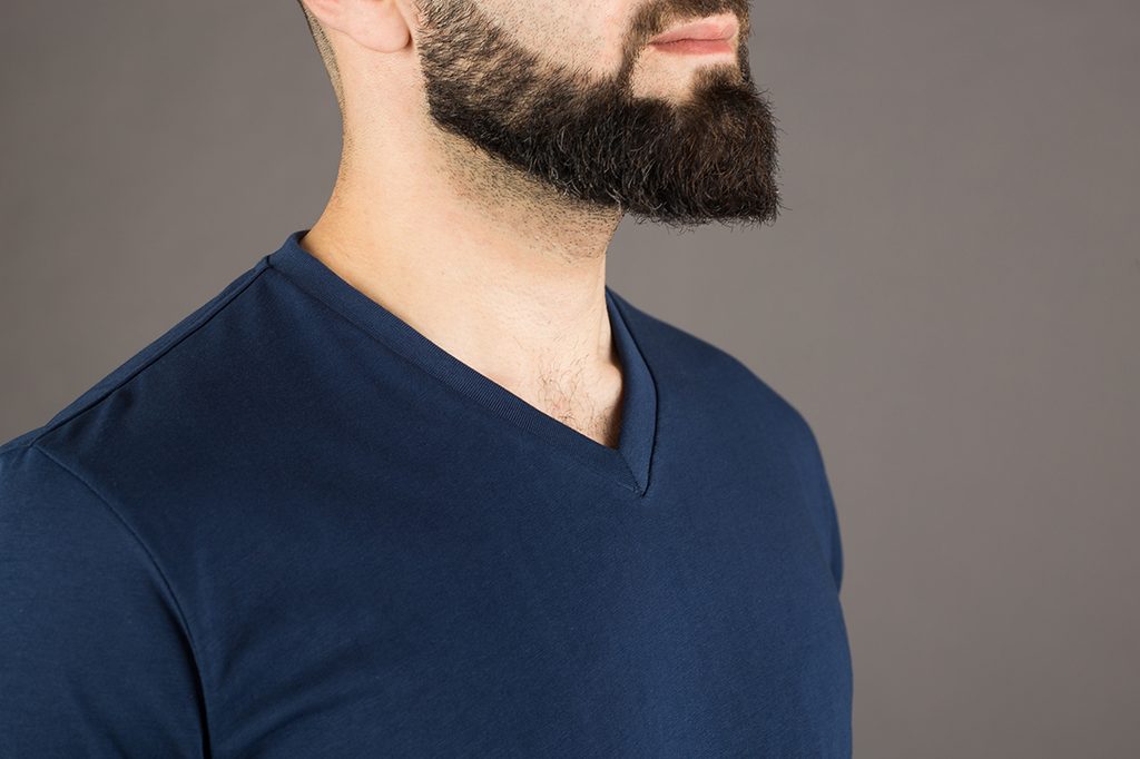 Una maglietta con una stampa? Non venite da noi per questo, è roba per ragazzi. Mentre voi volete avere un aspetto magnifico anche quando non siete al lavoro. Ecco perché non abbiamo complicato le cose. Colore blu navy, scollatura a V e nulla più.