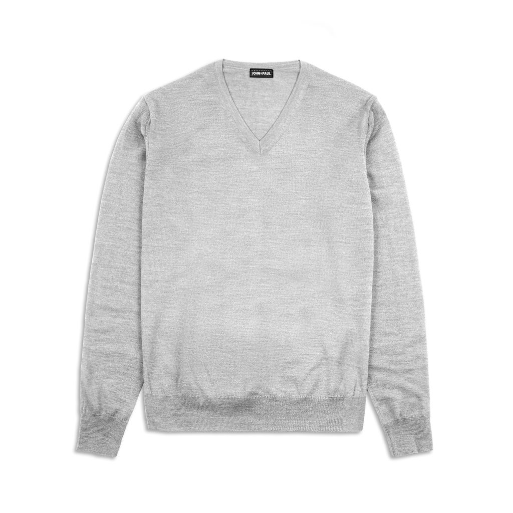 Maglione leggero John & Paul in lana merino - grigio (scollatura a V)