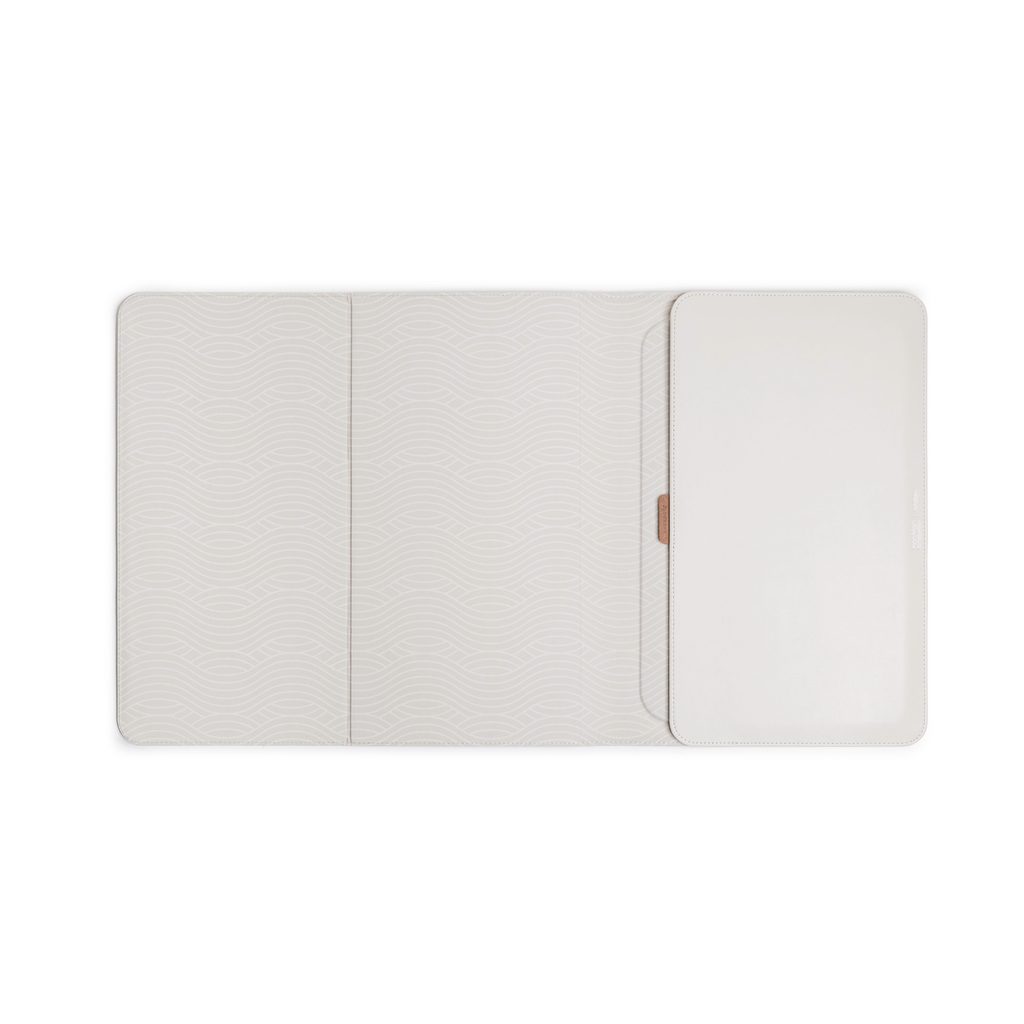 Un altro dei tanti miglioramenti pratici per l'ufficio e la casa è questa custodia anfibia per laptop. Una volta aperta, diventa una superficie da scrivania (desk mat) con una base integrata per il mouse. Inoltre, consente di caricare il laptop anche quando è chiusa.