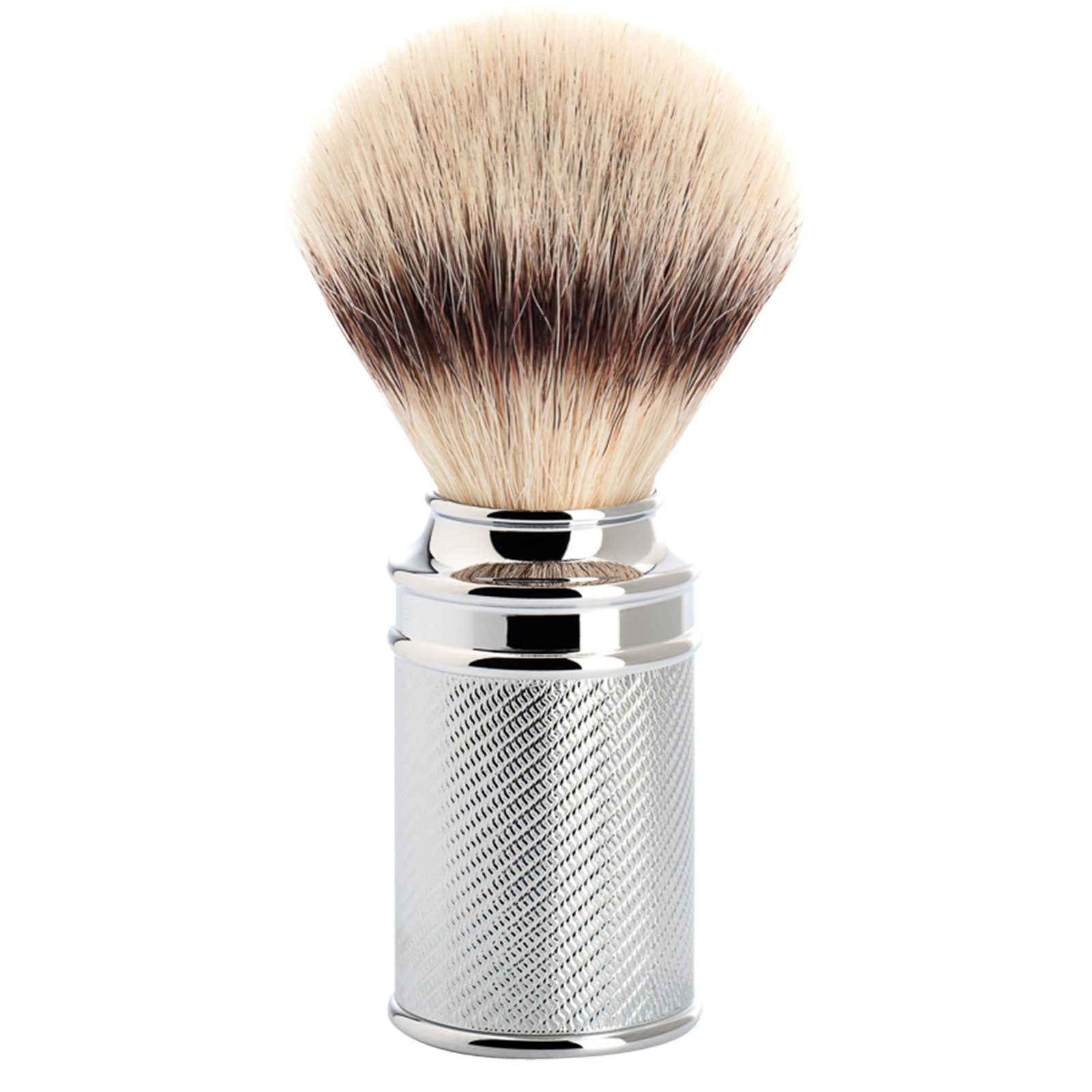 È un pennello da barba di medie dimensioni con un manico in metallo dalla forma classica con finitura cromata, ma dotato di setole sintetiche Silvertip Fibre® fatte a mano. Non solo imitano le setole di tasso della migliore qualità (silvertip badger, da cui il nome di questo pennello), ma le superano in molti aspetti. Il risultato è una sensazione ancora più morbida quando si applica la schiuma, eccellenti proprietà di assorbimento che consentono di ridurre notevolmente la quantità di sapone o crema utilizzata e un'asciugatura rapida, che a sua volta garantisce una lunga durata.