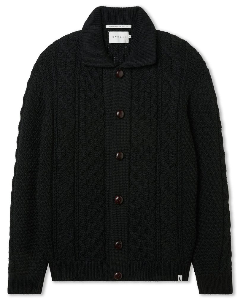 Questo cardigan a maglia grossa riprende i classici motivi Aran e la tradizione britannica della lavorazione a mano. Offre una texture marcata, un piacevole calore e un aspetto versatile, perfetto sia con una camicia in flanella sia con una semplice T-shirt. È realizzato in pura lana britannica, che lo rende naturalmente caldo, resistente e capace di mantenere bene la forma. Una scelta ideale per le giornate fredde, quando volete affidarvi a un capo di maglieria fatto come si deve.