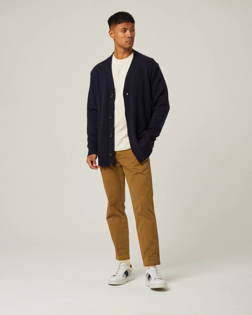 Tralasciando il “segno distintivo” di questo modello, ci troviamo davanti a un cardigan eccellente sotto ogni aspetto. Il taglio classico e confortevole e il peso leggero si combinano con la chiusura tramite bottoni importanti e con il gradevole motivo a coste sui bordi.
