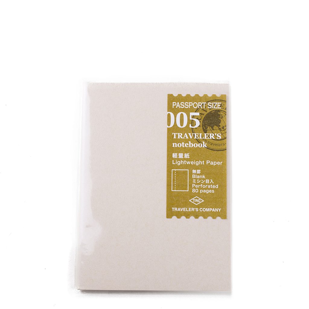 Questa ricarica per il taccuino da viaggio Traveler's Notebook è composta da 80 pagine di carta bianca di grammatura inferiore rispetto alla normale ricarica con fogli bianchi. Naturalmente non ha proprietà così perfette, questa carta è davvero molto sottile, ma non si può comunque ferirla con una normale penna.