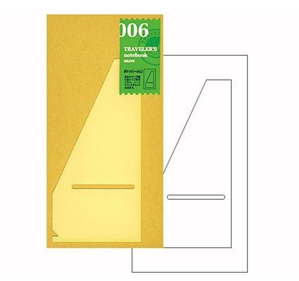 Una pratica aggiunta al vostro taccuino da viaggio Traveler’s Notebook. Una tasca grande e resistente che può essere incollata, ad esempio, sulla parte interna delle copertine o su una delle ricariche, e utilizzata per contenere lettere, ritagli e altro.