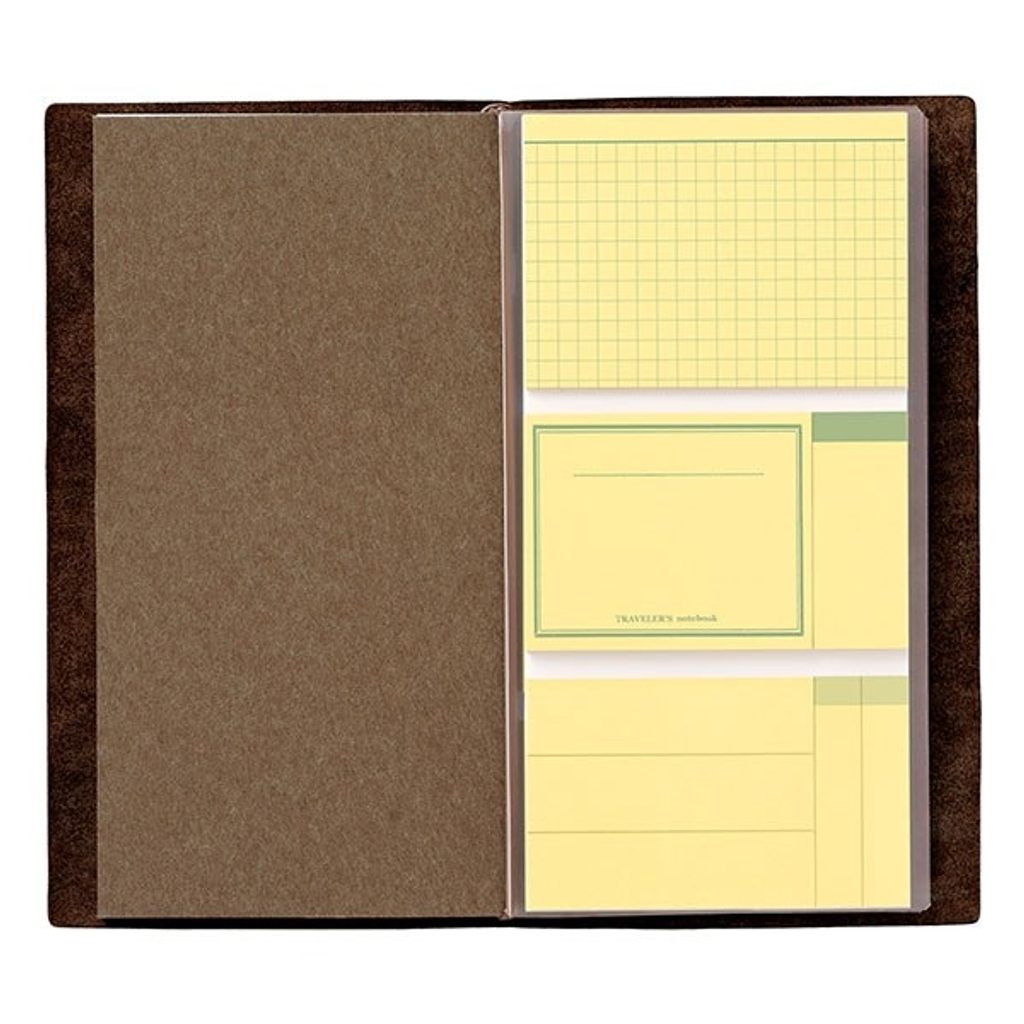 Ricarica per il taccuino da viaggio Traveler’s Notebook piena di adesivi post-it gialli. Tutti ne hanno bisogno nella vita. Contiene otto formati diversi di adesivi, ciascuno con trenta pezzi.