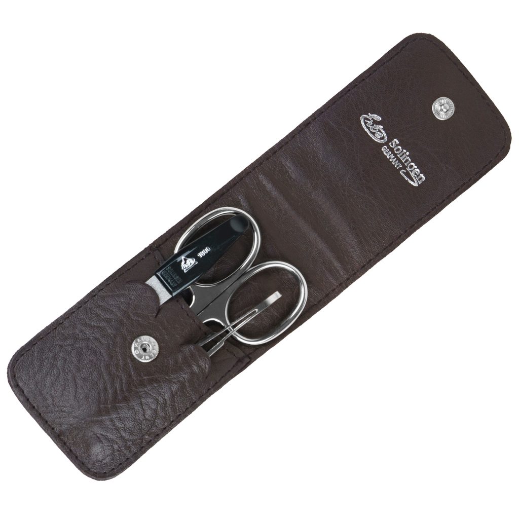 Questo set per manicure è confezionato in una custodia richiudibile in pelle resistente.