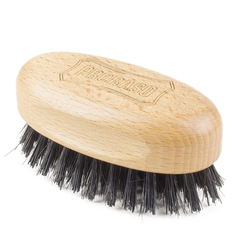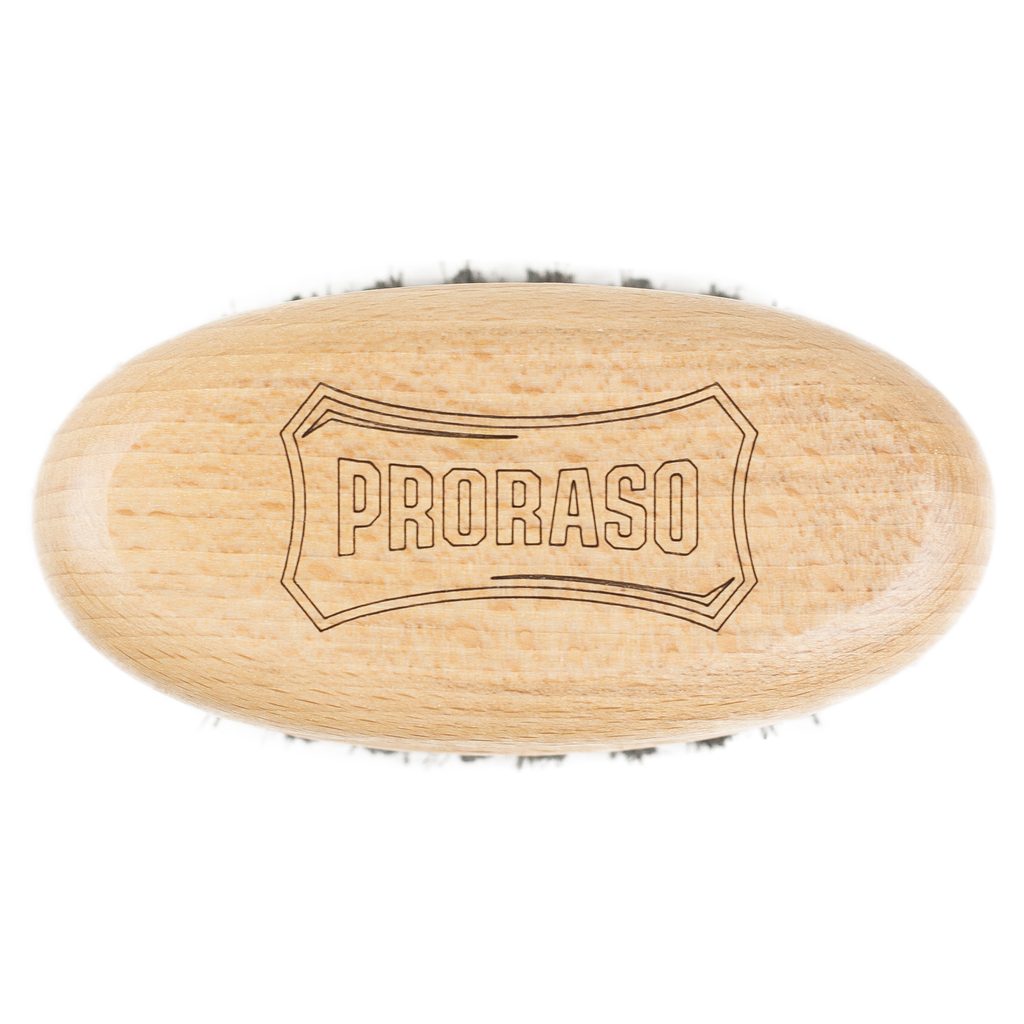 Spazzola per baffi in legno dell’officina della famosa azienda italiana Proraso. Manico in legno chiaro e setole in una combinazione di cinghiale e fibre sintetiche.