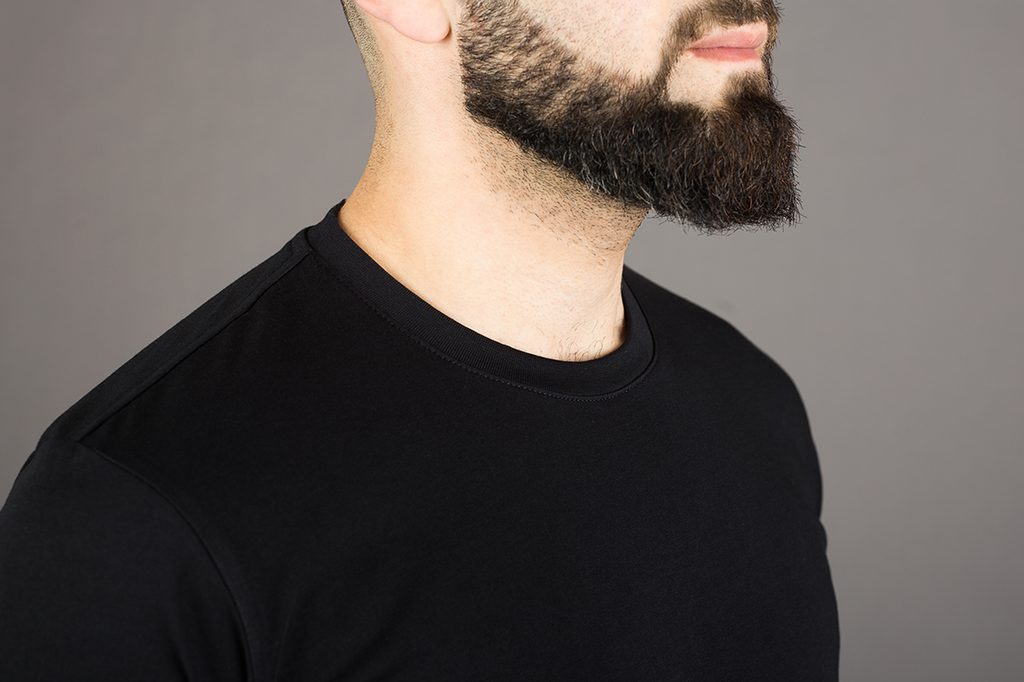 Una maglietta con una stampa? Non venite da noi per questo, è roba per ragazzi. Mentre voi volete avere un aspetto magnifico anche quando non siete al lavoro. Ecco perché non abbiamo complicato le cose. Tinta unita nera, classica scollatura rotonda e niente di più.
