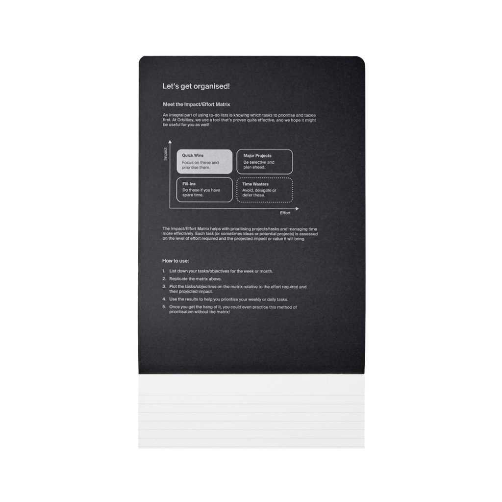 Un trio di bei taccuini in un colore nero minimalista ed elegante. Nella confezione sono inclusi alcuni consigli per una migliore organizzazione personale.