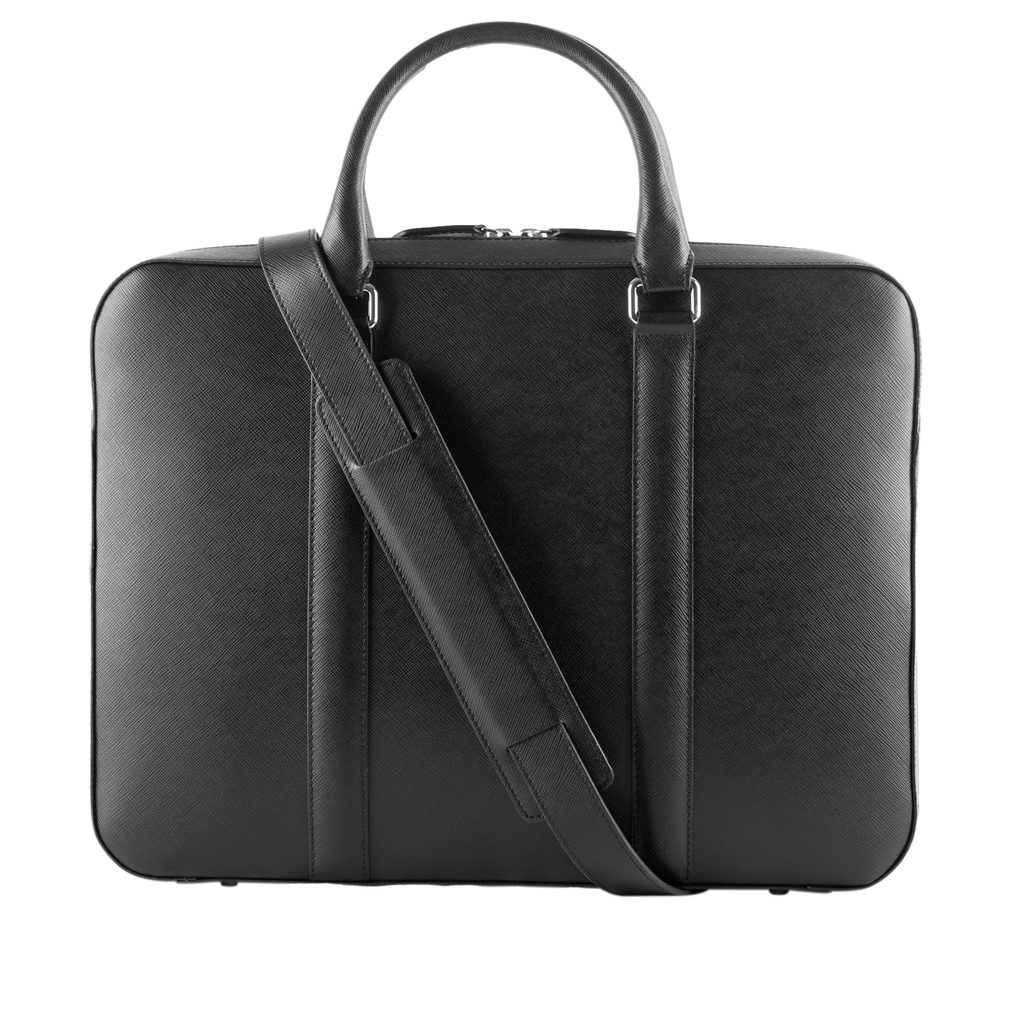 Tracolla nera per la nostra borsa per portatile John & Paul. Pelle Saffiano, imbottitura, parti metalliche italiane.